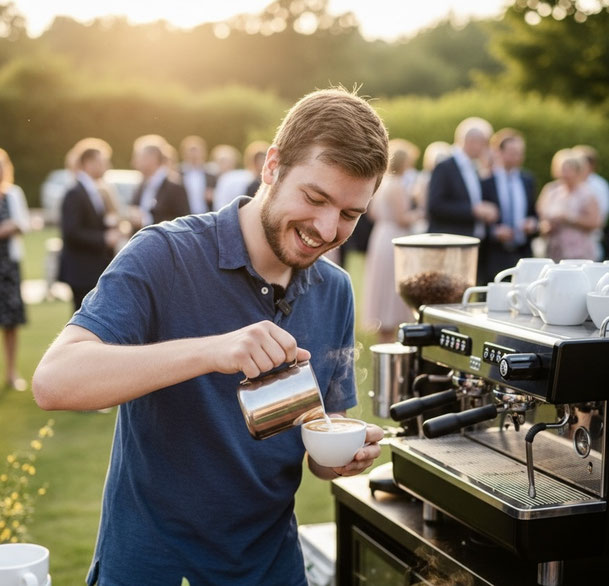 Ob auf Messen, Firmenevents oder Hochzeiten - mit meinem mobilen Kaffeestand und professionellen Barista-Dienstleistungen sorge ich für aromatische Highlights, die in Erinnerung bleiben.